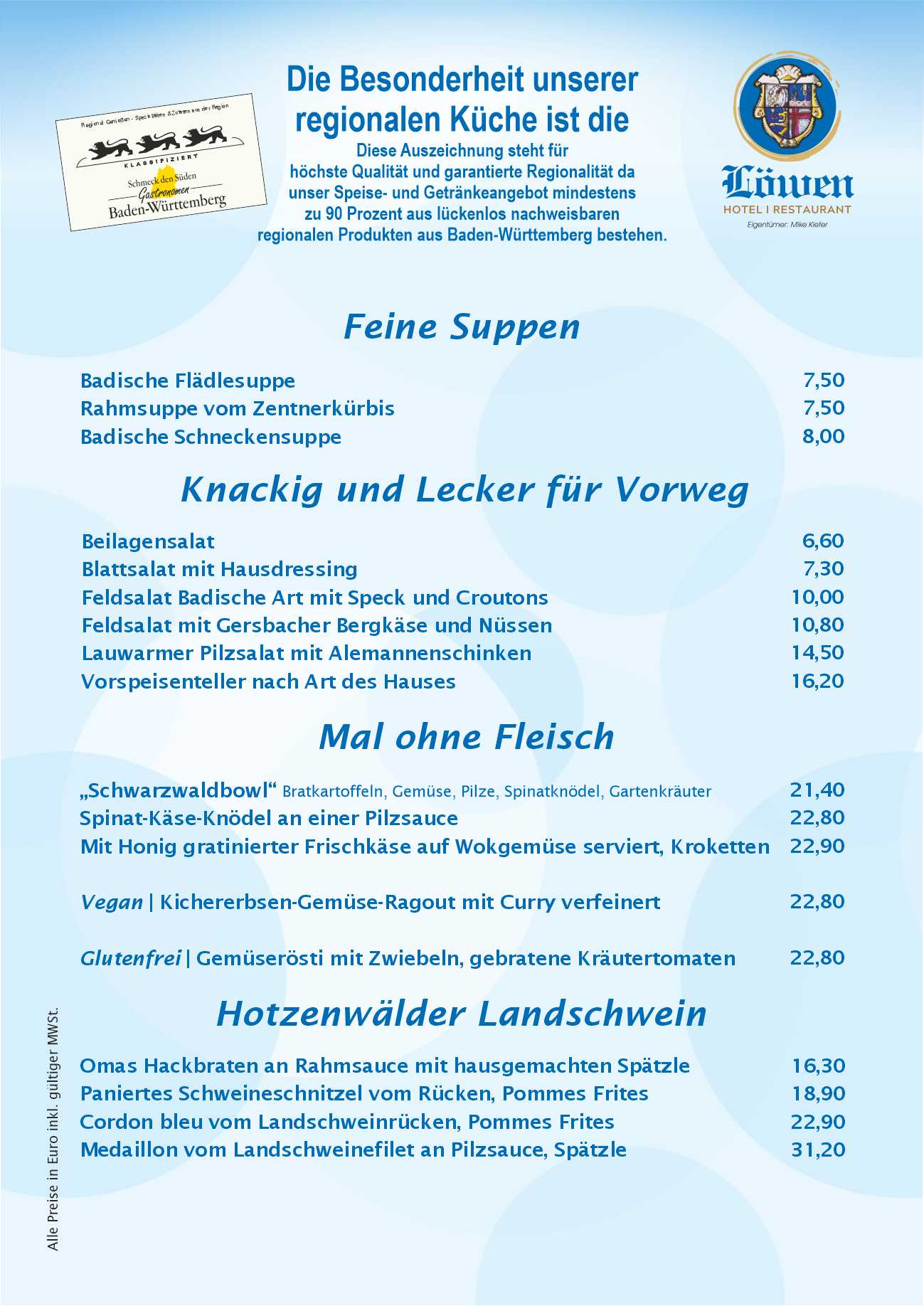 Unsere Speisekarte